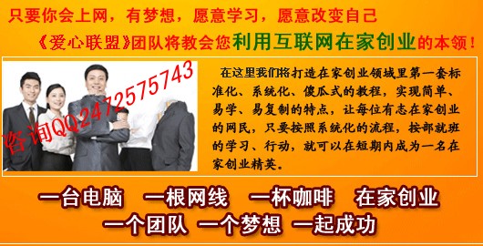 最新網(wǎng)絡(luò)兼職!不收任何費(fèi)用!時(shí)間自由!工資立結(jié)!期待有識(shí)之士相聚愛心聯(lián)盟團(tuán)隊(duì),共創(chuàng)財(cái)富奇跡!【愛心互助聯(lián)盟】愛心聯(lián)盟操作平臺(tái)是一家以誠(chéng)信為基礎(chǔ),以制度為導(dǎo)航,以公平為準(zhǔn)則,以平等為前提的網(wǎng)絡(luò)投資機(jī)構(gòu)。利用現(xiàn)代化網(wǎng)絡(luò)工具,運(yùn)用資本運(yùn)作模式和操作技巧,只需要200元來(lái)啟動(dòng)的好項(xiàng)目招募中!qq2472575743真心祝愿讓美麗的鮮花,鋪滿我們前進(jìn)的道路!讓燦爛的陽(yáng)光普照我們多彩的人生!愛心互助聯(lián)盟的核心