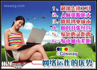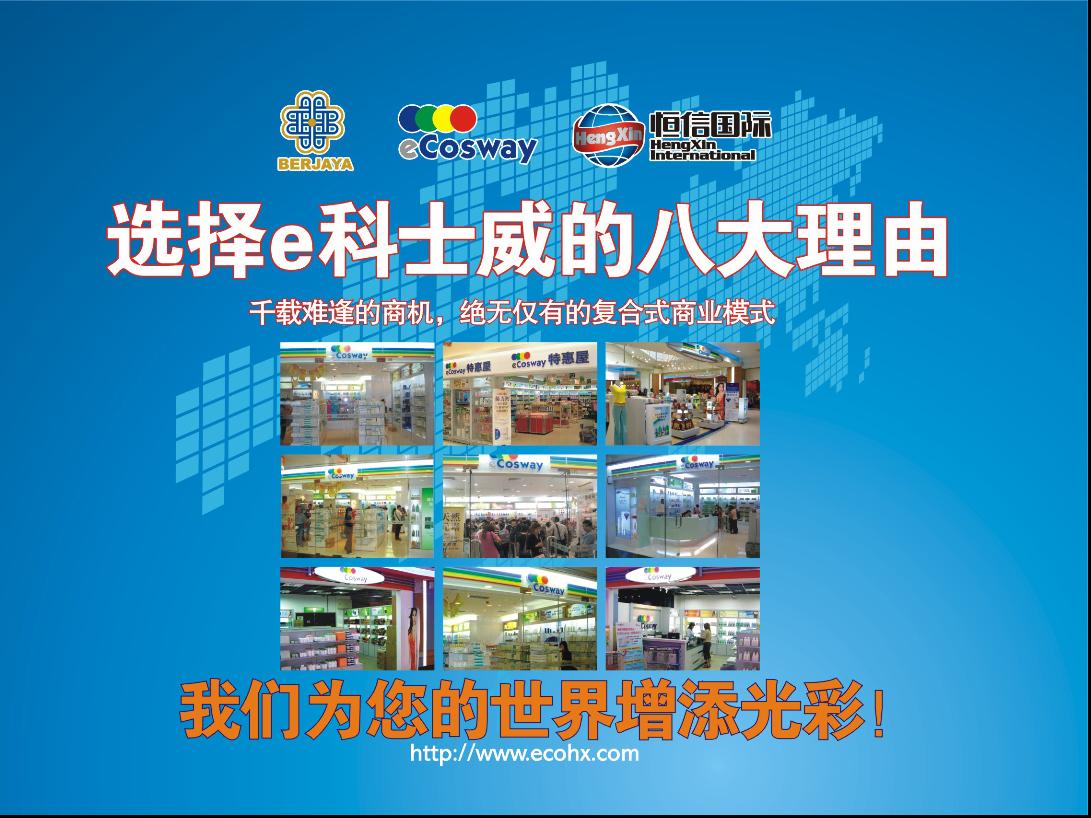 1、eCosway幫助你夢(mèng)想成真17、eCosway讓你做生命的主人2、eCosway為你找出無(wú)限可能18、eCosway讓成功沒(méi)上限,沒(méi)有席位限制#Y“w“e:g!F|3p3`3、eCosway給你真正的立足點(diǎn)19、eCosway全球最大的eCosway市場(chǎng)即將開(kāi)放4、eCosway是進(jìn)化的連鎖加盟事業(yè)20、eCosway是個(gè)彈性的行業(yè)5、eCosway掌握品牌和通路的主流21、eCosway讓