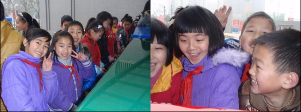 孩子們純真的笑臉真是讓人感動(dòng)和溫暖。操場(chǎng)上有班級(jí)正在上手工制作課,這彩色手印真夠創(chuàng)意的