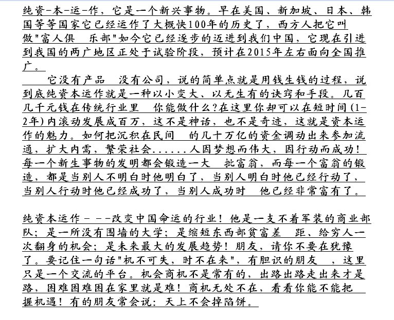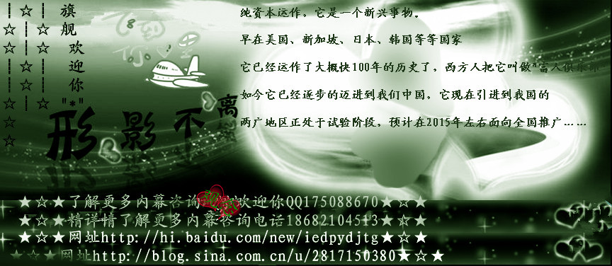 選擇網`資的十大理由選擇網`資的十大理由了解更多內幕咨詢完理歡迎你QQ1750886709咨詢電話186821045131、☆真正的以小搏大,完全符合投資原則,以最小的投入獲取最大的利益;2、☆風險小,風險包括經濟風險和人格風險;3、☆回報高,93%的資金全部分配,是任何其他項目所無法比擬的;4、☆沒有業(yè)績壓力,級別只升不降,只做加法,不做減法;5、☆人人都可以成功,可為您聚升人氣,鏈條式管理,上