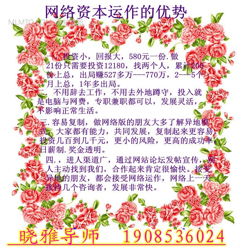 網(wǎng)。絡(luò)。資/C本/運(yùn)作小,風(fēng)險小,90%利潤(投資最低只要580元,最高僅需8932元)