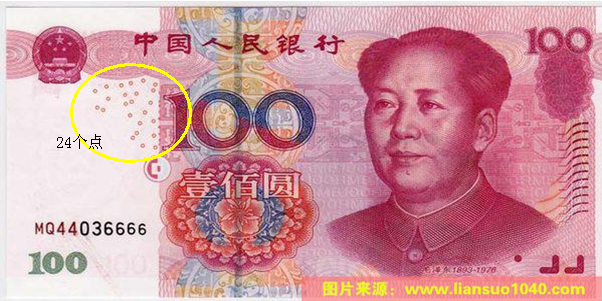 百元鈔票反面右下角有29個(gè)點(diǎn)