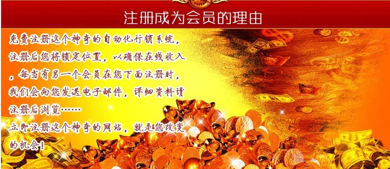 您已經(jīng)透過我們神奇的革命性營銷觀念 被自動放在一個有潛力、會賺錢的位置。當您加入我們的方案,成為會員時,您團隊的努力,及您的努力,都會決定成長的速度、您下面新會員的數(shù)目、及您獎金的多少。