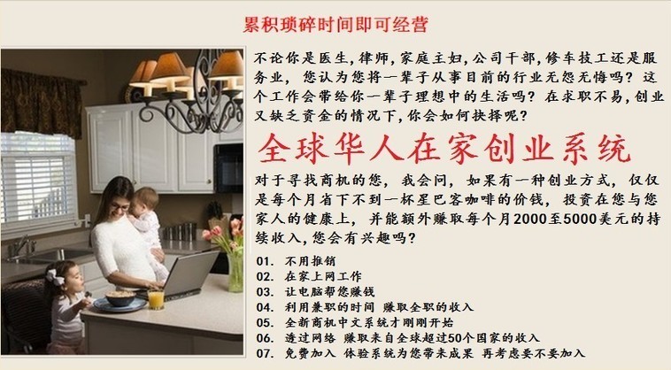 朋友你好,我們是和贏系統(tǒng),我也是您的成功教練和介紹人。我非常建議您跟我一起,加入我們這個由營銷權(quán)威組成的、有活力的團隊,讓您可以立即擁有穩(wěn)定的收入。朋友,當您加入和贏系統(tǒng),您將掌控技術的奧妙。和贏系統(tǒng)最先進的在線創(chuàng)業(yè)系統(tǒng),有頂尖的因特網(wǎng)營銷專家和在家創(chuàng)業(yè)人士作擔保。和贏系統(tǒng)建構(gòu)于同樣優(yōu)秀的自動化系統(tǒng)之上,所以成為第一流的因特網(wǎng)創(chuàng)業(yè)工具。這套系統(tǒng)既有創(chuàng)意,又很獨特?,F(xiàn)在這套讓人贊嘆的系統(tǒng)將為您服務。您甚至還沒搞清楚狀況就已經(jīng)先賺錢了。和贏系統(tǒng)就是這么容易。不需要經(jīng)驗。只要動動鼠標,剩下的交給我們一流、有創(chuàng)意、的技術就可以了!