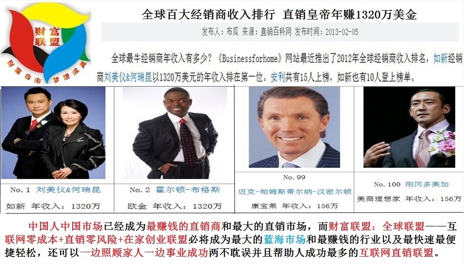 聯(lián)系QQ:2462828783。財(cái)富聯(lián)盟,全球聯(lián)盟,互聯(lián)網(wǎng)住家創(chuàng)業(yè)導(dǎo)師-黃蓉:隆力奇財(cái)富聯(lián)盟優(yōu)秀主持人,隆力奇財(cái)富國際聯(lián)盟-互聯(lián)網(wǎng)零風(fēng)險(xiǎn)零成本住家創(chuàng)業(yè)導(dǎo)師,資深顧問。隆力奇財(cái)富聯(lián)盟愛心創(chuàng)業(yè)聯(lián)盟創(chuàng)始人。