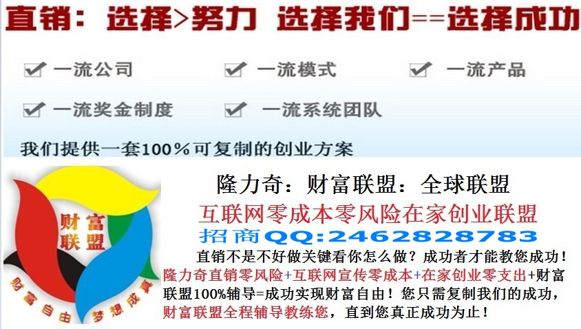 謹(jǐn)將本內(nèi)容獻(xiàn)給渴望財(cái)富自由夢(mèng)想成真的朋友們,獻(xiàn)給正在考察互聯(lián)網(wǎng)在家創(chuàng)業(yè)項(xiàng)目的有志之士們,同時(shí)也獻(xiàn)給我的財(cái)富聯(lián)盟家人們,一個(gè)個(gè)優(yōu)秀的隆力奇直銷人。