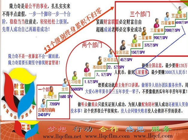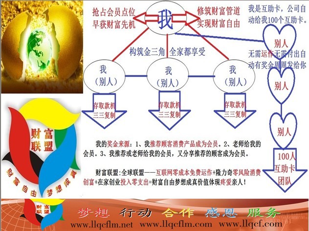 財(cái)富聯(lián)盟幫助數(shù)以千計(jì)萬計(jì)的人在互聯(lián)網(wǎng)獲得了在家創(chuàng)業(yè)的成功、事業(yè)機(jī)會(huì)和價(jià)值尊嚴(yán),同時(shí)獲得了周薪過千月入過萬的財(cái)富管道收入,幫助千千萬萬的個(gè)人和家庭享受了隆力奇的優(yōu)質(zhì)產(chǎn)品,帶給了他們健康美麗和諧幸福的新生活,傳播了財(cái)富聯(lián)盟:全球聯(lián)盟——互聯(lián)網(wǎng)零成本零風(fēng)險(xiǎn)在家創(chuàng)業(yè)聯(lián)盟(五大文化:夢想、行動(dòng)、合作、感恩、服務(wù))的博大關(guān)愛。