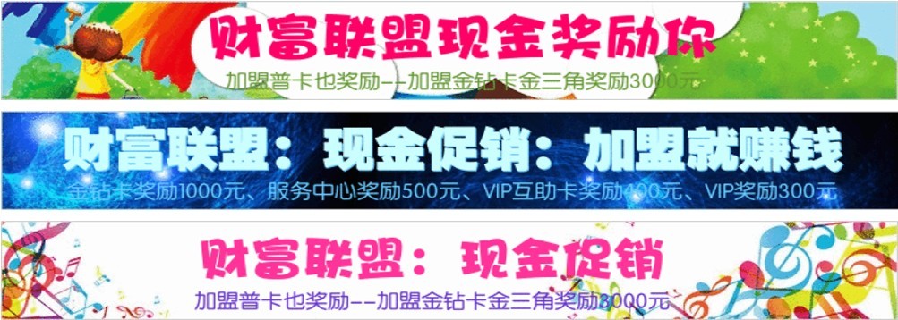 2013年1月和3月,財(cái)富聯(lián)盟:全球聯(lián)盟——互聯(lián)網(wǎng)零成本零風(fēng)險(xiǎn)在家創(chuàng)業(yè)聯(lián)盟,發(fā)起“新年新氣象——2013蛇年大吉財(cái)富家人獎(jiǎng)勵(lì)促銷活動(dòng)”,幫助和扶持了數(shù)以百計(jì)的伙伴們和財(cái)富聯(lián)盟各團(tuán)隊(duì)領(lǐng)導(dǎo)人成功獲得現(xiàn)金獎(jiǎng)勵(lì),免費(fèi)網(wǎng)站宣傳展示,有力的促進(jìn)了財(cái)富家人的業(yè)績?cè)鲩L。