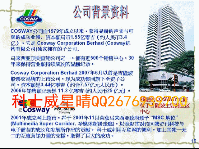 5 、科士威總裁反問(wèn)政府高層:“ 不拿直銷牌照,但我們又是多層次的,下一屆政府是否會(huì)允許我們這么做?” 政府高層:“ 每個(gè)產(chǎn)品每個(gè)行業(yè)都是多層次的,只是方式不同,不管賣什么產(chǎn)品都是多層次的,電腦手機(jī)等等都是多層次的,傳統(tǒng)生意都是多層次,只是計(jì)酬方式不同。” 傳統(tǒng)會(huì)員卡積分返物,而科士威是積分返錢,分享只是在做廣告而已,介紹朋友開店,也是廣告。
