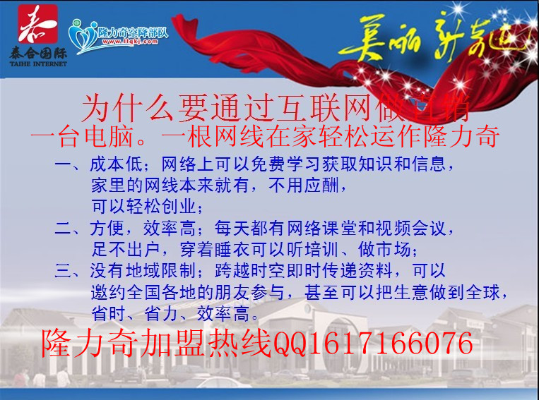 作者:馬風(fēng)英 聯(lián)系方式QQ:1617166076電話:15866408645 .隆力奇直銷創(chuàng)業(yè)導(dǎo)師,資深顧問,網(wǎng)商教練!隆力奇直銷空降部隊(duì)168國(guó)際團(tuán)隊(duì)創(chuàng)始人、資深直銷實(shí)戰(zhàn)專家,高級(jí)培訓(xùn)導(dǎo)師。擅長(zhǎng)于直銷團(tuán)隊(duì)建立、人才培養(yǎng)與系統(tǒng)打造。尋找敢于挑戰(zhàn)高薪的住家創(chuàng)業(yè)精英!我們一起全力以赴,我來手把手教會(huì)你互聯(lián)網(wǎng)輕松創(chuàng)業(yè)做網(wǎng)商