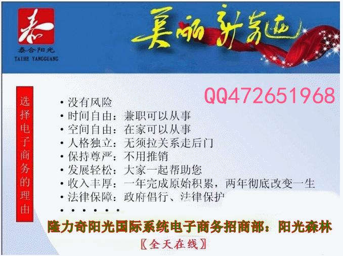 隆力奇陽光國際系統(tǒng)電子商務(wù)招商部: