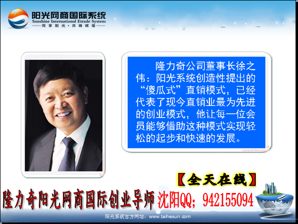 隆力奇陽光網(wǎng)商國際系統(tǒng)歡迎您的加入!