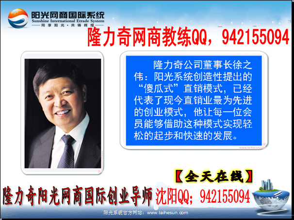 隆力奇陽光網(wǎng)商國際系統(tǒng)黃埔式起航培訓(xùn) 創(chuàng)業(yè)網(wǎng)商沈陽,QQ,942155094