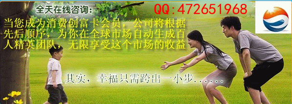 創(chuàng)富卡-創(chuàng)業(yè)+消費,一網(wǎng)運作,雙網(wǎng)受益。這是所有直銷公司前所未有的舉措。全球直銷界首次推出,全球資源共享。又一次機會來到你的面前,和富人比速度,讓富人為你工作。創(chuàng)消費創(chuàng)富互助卡會員對于窮人,是擺脫貧困的絕佳選擇,對于富人,又是增加財富的又一上好投資渠道。創(chuàng)富卡會員,讓你走上財富重新洗牌的快車道。