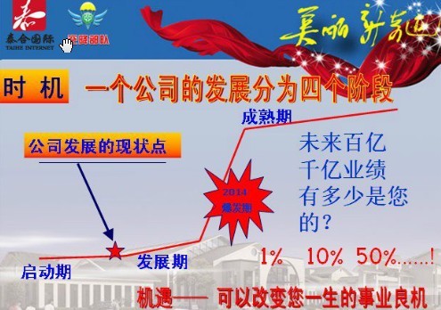 二、定制營(yíng)銷計(jì)劃以空中【電子商務(wù)】+地面,完善健全了信息流、資金流、物流三位一體的復(fù)合式營(yíng)銷平臺(tái),為每一位會(huì)員搭建了一個(gè)健康、穩(wěn)固、永久的創(chuàng)業(yè)平臺(tái);