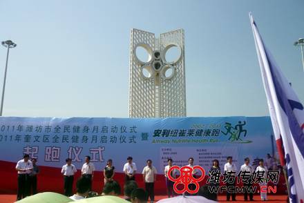 6月11日上午9點30分, 2011年濰坊全民健身月、2011年奎文區(qū)全民健身月啟動儀式暨安利紐崔萊健康跑活動在風(fēng)箏廣場舉行。市委常委、宣傳部長劉明珂、副市長王桂英等市區(qū)領(lǐng)導(dǎo)出席了啟動儀式。王桂英在啟動儀式上致辭。