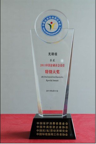 無限極喜獲中國企業(yè)社會(huì)責(zé)任特別大獎(jiǎng)6月17日,由由中國外商投資企業(yè)協(xié)會(huì)、中國保護(hù)消費(fèi)者基金會(huì)、中國民(私)營經(jīng)濟(jì)研究會(huì)、中國環(huán)境新聞工作者協(xié)會(huì)和北京市石景山區(qū)人民政府聯(lián)合主辦的“第三屆企業(yè)社會(huì)責(zé)任年會(huì)”在京舉行。本次年會(huì)主題為“企業(yè)的責(zé)任戰(zhàn)略與創(chuàng)新”。年會(huì)上隆重揭曉“2011(第三屆)中國企業(yè)社會(huì)責(zé)任榜單”。無限極(中國)有限公司經(jīng)過嚴(yán)格審核,入選“中國企業(yè)社會(huì)責(zé)任榜100強(qiáng)”,并獲“2011中國企業(yè)社會(huì)責(zé)任特別大獎(jiǎng)”和“2011中國企業(yè)社會(huì)責(zé)任公益獎(jiǎng)”兩項(xiàng)殊榮。