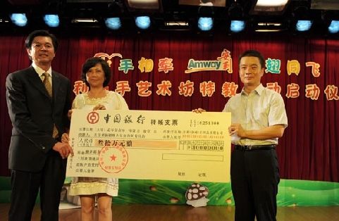 此外,安利公司向新疆維吾爾自治區(qū)團(tuán)委捐贈(zèng)“安利愛心巧手藝術(shù)坊”基金30萬,為烏魯木齊市兒童福利院捐建“助殘?zhí)厣止そ淌摇保刺厣浱罩谱?,特色手工粘貼畫制作;為烏魯木齊市盲校捐建趣味手工陶藝、版畫教室,“盲童之聲”聲樂、器樂教室等特教設(shè)施。