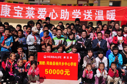 9月21日上午,陽(yáng)曲縣楊興鄉(xiāng)學(xué)校舉行了慈善助學(xué)儀式,康寶萊(中國(guó))保健品有限公司公司山西分公司特級(jí)經(jīng)銷商為該校捐贈(zèng)現(xiàn)金和保健品總計(jì)50000元。此筆善款將用于幫助該校學(xué)生改善過冬采暖及日常營(yíng)養(yǎng)補(bǔ)充。