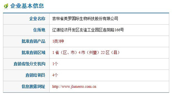 熱直銷網(wǎng)快訊:2013年1月23日,商務(wù)部網(wǎng)站直銷行業(yè)信息系統(tǒng)正式發(fā)布吉林省美羅國際生物科技股份有限公司拿牌公告,這也正式宣告美羅國際成為第33家獲得直銷牌照的企業(yè)。