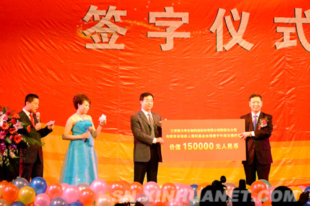 4月17日上午,由陜西省殘疾人聯(lián)合會、陜西省殘疾人福利基金會和江蘇隆力奇陜西分公司聯(lián)合舉辦的“關愛殘疾人,共建和諧社會”捐贈簽字儀式在西安舉行。