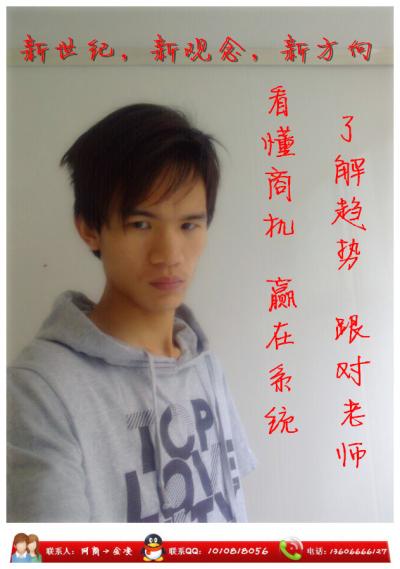 做事業(yè):難在看懂,停在情緒,斷在行動,慢在依賴,快在獨立,亂在拉人,贏在跟對,垮在意志,苦在單干,巧在借力,虧在自私,錯在指責,勝在檢討,差在不改,累在盲目,貴在付出,賠在自大,輸在少學,敗在放棄,成在堅持。他出生于美麗的湖北京山,并在那里長大,畢業(yè)于湖北華中科技大學,機電系,現(xiàn)在工作于天津南開區(qū),為做好春芝堂事業(yè),常住抽空上網(wǎng)。工作于美容養(yǎng)生與春芝堂網(wǎng)商!他曾經(jīng)從事過一家電子公司的流水線作業(yè)員,[詳細]