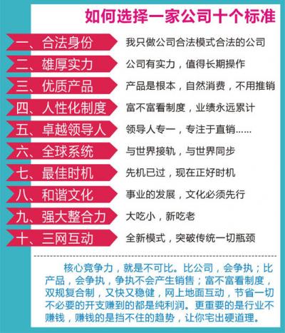 朋友你好~~~請?jiān)徫业牟患s而至?。∫慌_電腦~一杯咖啡,輕松優(yōu)雅做網(wǎng)商(E化直銷,住家創(chuàng)業(yè))早先一步,領(lǐng)先一路,早知三天,富貴三年。詳情咨詢Q:243747171--網(wǎng)商教練龍壹?xì)g迎業(yè)內(nèi)精英精彩人生共享?。≈变N界綜合實(shí)力最強(qiáng)的公司和系統(tǒng)祝你成就夢想?。?!